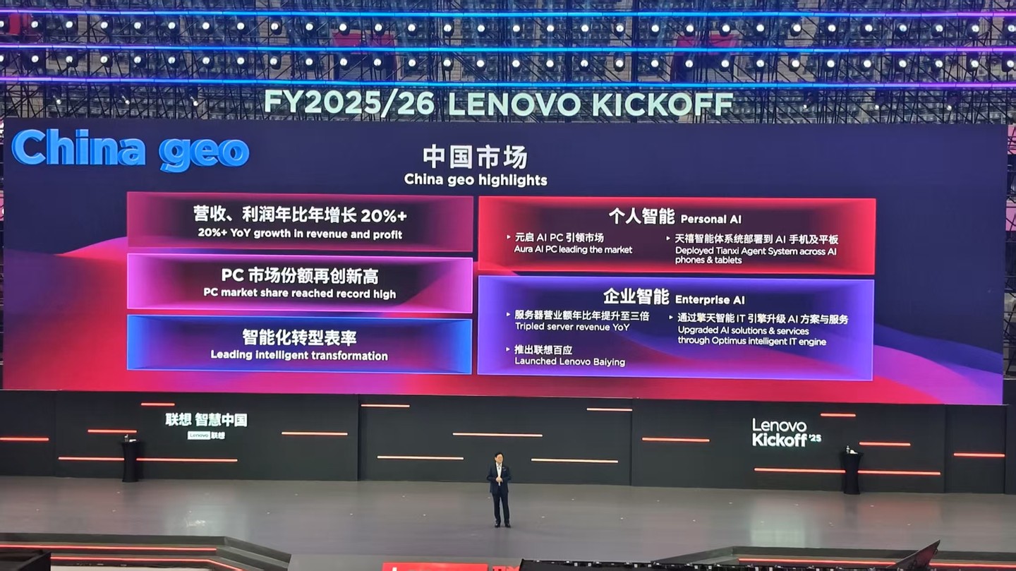 At the Lenovo Group's 2025/26 fiscal year kick-off meeting, Chairman and CEO Yang Yuanqing stated that the soon-to-end fiscal year will be one of the best in the company's history. Despite the overall decline in the PC market, Lenovo's revenue and profit in the China region achieved over 20% growth. The company launched AI PCs in the personal intelligence sector, and its infrastructure business also made significant progress, with server revenue being three times that of the previous fiscal year, winning major clients such as Alibaba and ByteDance
