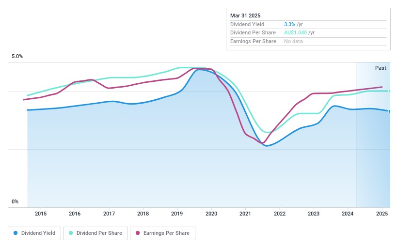 Amidst the recent fluctuations in the Australian market, including a significant downturn followed by a projected rebound, investors are keenly observing how these shifts might present new opportunities. In such a dynamic environment, dividend stocks can offer stability and potential income streams, making them an attractive consideration for those looking to navigate current market conditions.