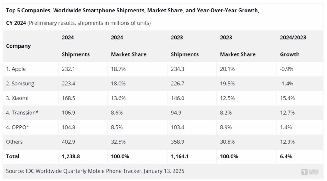 A good signal is that research firm IDC pointed out that since the second half of 2023, the global smartphone market has shown a steady recovery, with the growth rate of shipments for the entire last year approaching 7%. From a sales perspective, the global smartphone market has also ended the lowest point in a decade set in 2023, with a year-on-year growth of 4%.