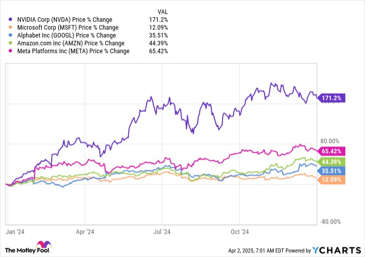 The pessimism likely comes from economic uncertainty caused by tariffs or a potential trade war. The market is worried that it could cause these companies' base businesses to struggle. If so, they won't have as many excess funds to spend on AI, disproportionately affecting Nvidia (which is down the most of these five).