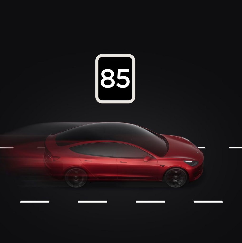 超速駕駛被定義為在超過 85 mph 的速度下駕駛,或在前方車輛速度超過 25 mph 且距離您車輛在 100 米以內時,駕駛速度比前方車輛快 20%。該值以總駕駛時間的百分比表示,並在安全評分測試版公式中上限為 10.0%。自動駕駛狀態下的超速駕駛不計入安全評分測試版公式。