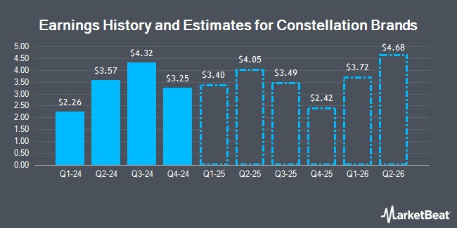 Constellation Brands (NYSE:STZ - Get Free Report) last issued its quarterly earnings results on Friday, January 10th. The company reported $3.25 earnings per share (EPS) for the quarter, missing the consensus estimate of $3.33 by ($0.08). Constellation Brands had a net margin of 6.27% and a return on equity of 26.55%. The business had revenue of $2.46 billion during the quarter, compared to analyst estimates of $2.53 billion. During the same quarter in the previous year, the firm posted $3.19 earnings per share. The firm's quarterly revenue was down .3% on a year-over-year basis.