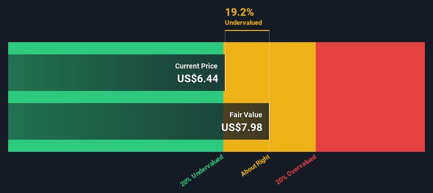 總價值是未來十年的現金流總和加上折現後的終值,這樣得出的總股本價值為 677 百萬美元。為了得到每股的內在價值,我們將其除以總的流通股數。與當前股價 6.3 美元相比,該公司似乎略微被低估,折扣為 22%。不過請記住,這只是一個近似估值,像任何複雜的公式一樣——輸入垃圾,輸出垃圾。