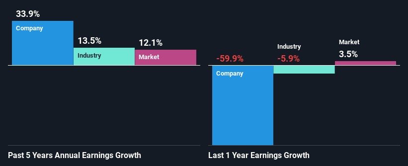 We then compared Tower Semiconductor's net income growth with the industry and we're pleased to see that the company's growth figure is higher when compared with the industry which has a growth rate of 13% in the same 5-year period.