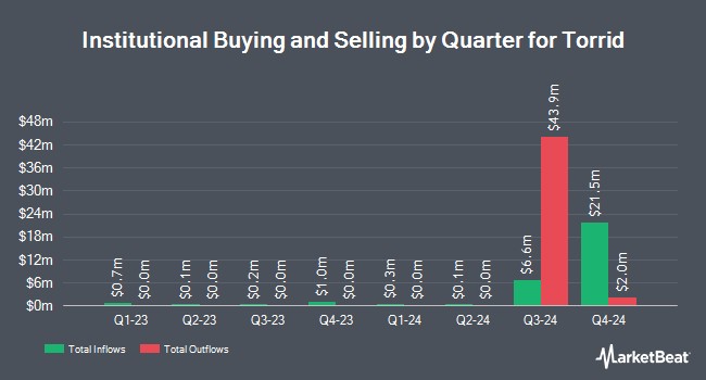 Several other hedge funds and other institutional investors have also recently bought and sold shares of CURV. Rhumbline Advisers grew its position in Torrid by 10.9% during the 4th quarter. Rhumbline Advisers now owns 17,213 shares of the company's stock worth $90,000 after purchasing an additional 1,685 shares during the last quarter. Corebridge Financial Inc. grew its position in Torrid by 53.6% in the 4th quarter. Corebridge Financial Inc. now owns 10,052 shares of the company's stock valued at $53,000 after buying an additional 3,509 shares during the last quarter. Charles Schwab Investment Management Inc. increased its stake in Torrid by 8.6% in the 3rd quarter. Charles Schwab Investment Management Inc. now owns 87,941 shares of the company's stock valued at $346,000 after buying an additional 6,968 shares during the period. JPMorgan Chase & Co. increased its stake in Torrid by 125.2% in the 3rd quarter. JPMorgan Chase & Co. now owns 20,776 shares of the company's stock valued at $82,000 after buying an additional 11,551 shares during the period. Finally, Barclays PLC raised its holdings in Torrid by 354.5% during the third quarter. Barclays PLC now owns 17,416 shares of the company's stock worth $69,000 after purchasing an additional 13,584 shares in the last quarter. 81.82% of the stock is currently owned by institutional investors and hedge funds.