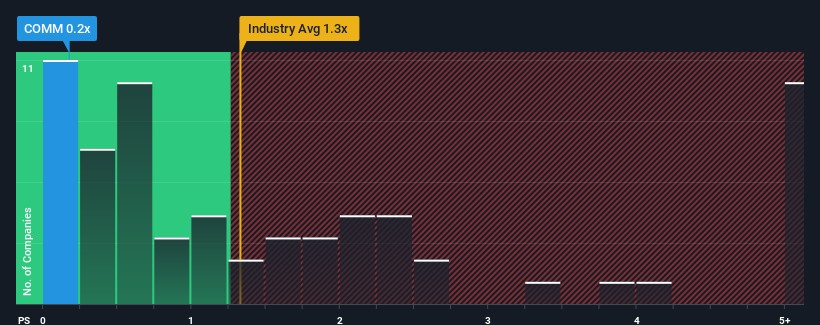After such a large drop in price, it would be understandable if you think CommScope Holding Company is a stock with good investment prospects with a price-to-sales ratios (or "P/S") of 0.2x, considering almost half the companies in the United States' Communications industry have P/S ratios above 1.3x. Nonetheless, we'd need to dig a little deeper to determine if there is a rational basis for the reduced P/S.