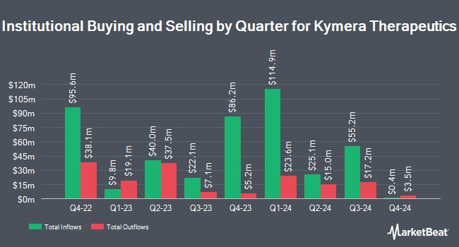 其他機構投資者和對沖基金最近也增加或減少了對該公司的持股。Blue Trust Inc. 在第四季度將其在 Kymera Therapeutics 的持股比例提高了 74.8%。Blue Trust Inc. 目前持有 631 股該公司的股票,價值 25,000 美元,此前在上個季度購買了額外的 270 股。KBC Group NV 在第四季度將其在 Kymera Therapeutics 的持股比例提高了 53.8%。KBC Group NV 目前持有 2,151 股該公司的股票,價值 87,000 美元,此前在上個季度收購了額外的 752 股。KLP Kapitalforvaltning AS 在第四季度購買了 Kymera Therapeutics 的新股份,價值約 310,000 美元。亞利桑那州退休系統在第四季度將其在 Kymera Therapeutics 的持股比例提高了 15.5%。亞利桑那州退休系統目前持有 11,221 股該公司的股票,價值 451,000 美元,此前在上個季度收購了額外的 1,503 股。最後,德克薩斯州教師退休系統在第四季度將其在 Kymera Therapeutics 的持股比例提高了 35.8%。德克薩斯州教師退休系統目前持有 11,490 股該公司的股票,價值 462,000 美元,此前在上個季度收購了額外的 3,026 股。