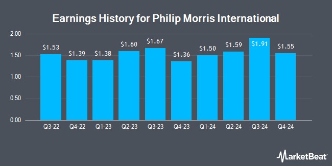 Philip Morris International (NYSE:PM - Get Free Report) last issued its quarterly earnings results on Thursday, February 6th. The company reported $1.55 earnings per share for the quarter, topping analysts' consensus estimates of $1.49 by $0.06. Philip Morris International had a net margin of 7.89% and a negative return on equity of 120.08%. On average, analysts expect Philip Morris International to post $7 EPS for the current fiscal year and $8 EPS for the next fiscal year.