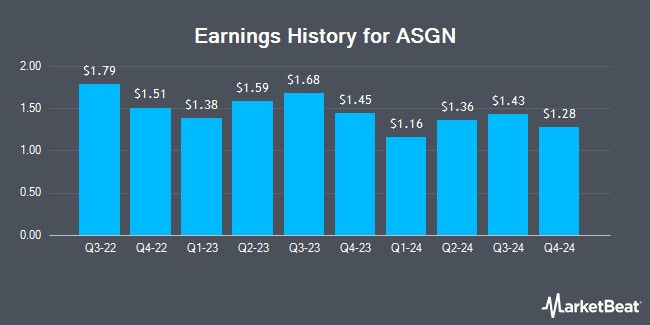 ASGN (NYSE:ASGN - Get Free Report) last announced its quarterly earnings results on Wednesday, February 5th. The business services provider reported $1.28 earnings per share (EPS) for the quarter, beating analysts' consensus estimates of $1.21 by $0.07. ASGN had a net margin of 4.27% and a return on equity of 13.22%. On average, analysts expect ASGN to post $5 EPS for the current fiscal year and $6 EPS for the next fiscal year.