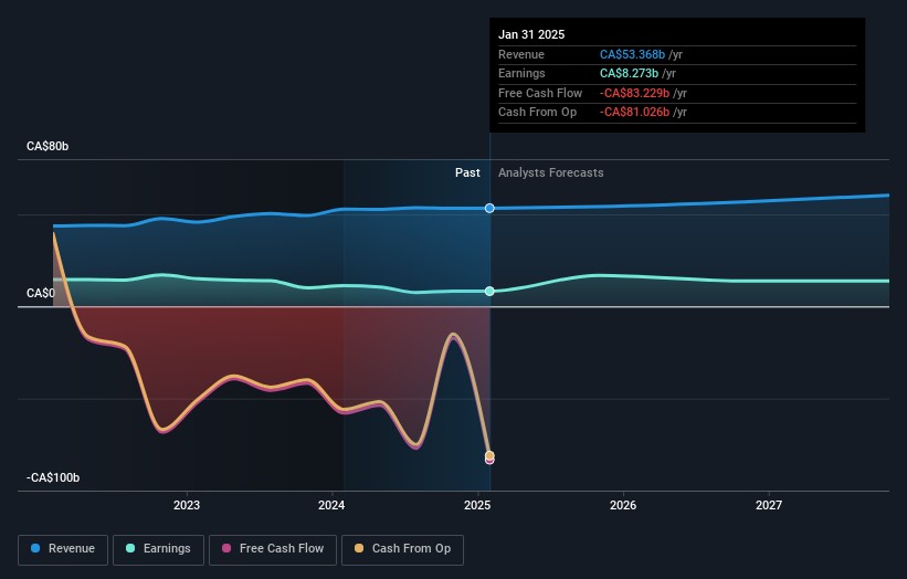 Optimism for Toronto-Dominion Bank (TSE:TD) has increased recently, despite a five-year decline in earnings. The bank's share price rose 55% over five years, below market returns, but increased 6.5% in the last year. The total shareholder return (TSR) over five years is 94%, boosted by dividends. Recent insider buying is a positive sign, and the bank's revenue growth of 8.7% per year may attract investors. Overall, Toronto-Dominion Bank shows good long-term and short-term performance, making it a stock worth monitoring.