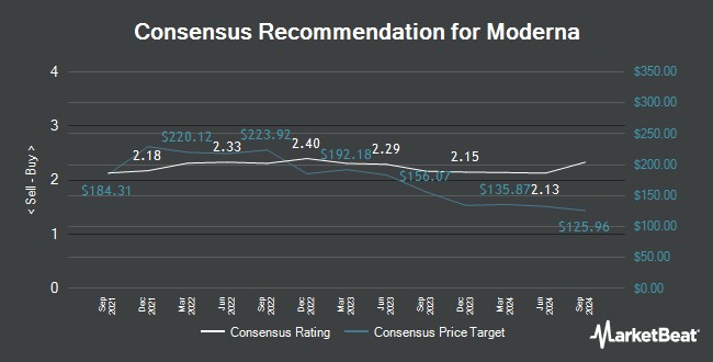 MRNA has been the subject of several other reports. Bank of America dropped their target price on shares of Moderna from $41.00 to $34.00 and set an "underperform" rating for the company in a research report on Tuesday, February 11th. Barclays downgraded Moderna from an "overweight" rating to an "equal weight" rating and reduced their target price for the company from $111.00 to $45.00 in a report on Tuesday, February 18th. Argus downgraded Moderna from a "buy" rating to a "hold" rating in a research report on Wednesday, December 18th. Berenberg Bank lifted their target price on Moderna from $33.00 to $42.00 and gave the company a "hold" rating in a research report on Thursday, January 16th. Finally, Leerink Partners dropped their target price on shares of Moderna from $31.00 to $27.00 and set an "underweight" rating for the company in a report on Thursday, January 16th. Four analysts have rated the stock with a sell rating, sixteen have assigned a hold rating, three have issued a buy rating and one has assigned a strong buy rating to the company's stock. According to data from MarketBeat.com, the company has a consensus rating of "Hold" and a consensus price target of $58.70.