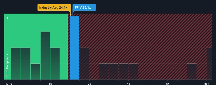F5, Inc.'s (NASDAQ:FFIV) price-to-earnings (or "P/E") ratio of 25.1x might make it look like a strong sell right now compared to the market in the United States, where around half of the companies have P/E ratios below 16x and even P/E's below 9x are quite common. However, the P/E might be quite high for a reason and it requires further investigation to determine if it's justified.