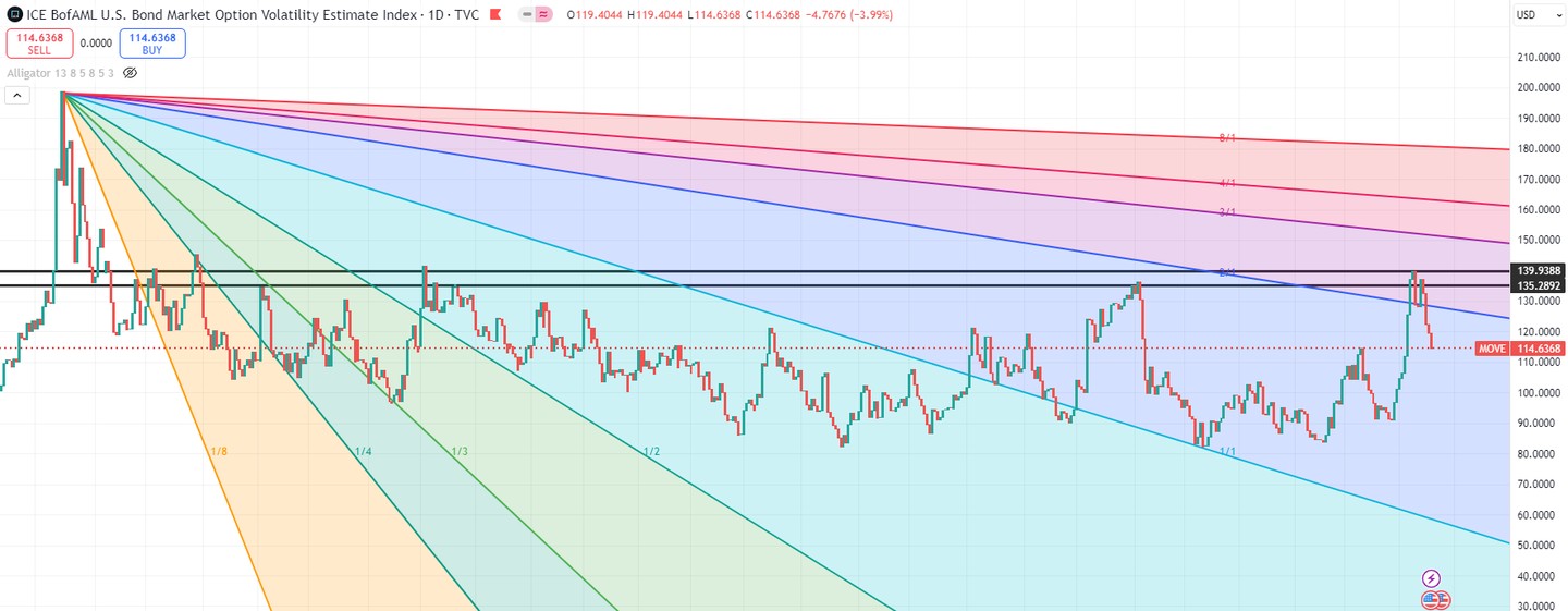 美國 4 月 9 日宣佈暫停對等關稅 90 天,並陸續與多國開啟密集的貿易談判。另外,聯准會更加明確地向市場展示出其貨幣政策路徑依據——「聯准會當前首要工作是維持物價穩定,只有在通脹回落速率快於勞動市場時才會加快降息。」美債拋售的恐慌情緒暫時宣告結束,衡量美國國債市場的隱含波動性的 MOVE 指數連續四日下跌,上周跌 16.48%,錄得自 2024 年 11 月以來最大單周跌幅。一系列因素均表明有關。