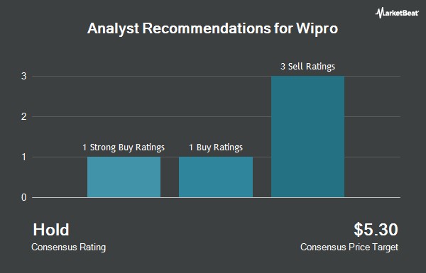 Several other research analysts also recently issued reports on the stock. UBS Group raised shares of Wipro from a "sell" rating to a "neutral" rating in a research report on Thursday, January 2nd. Jefferies Financial Group downgraded shares of Wipro from a "hold" rating to an "underperform" rating in a report on Tuesday, April 8th. Two research analysts have rated the stock with a sell rating, three have assigned a hold rating, one has given a buy rating and one has assigned a strong buy rating to the company. According to MarketBeat.com, Wipro presently has a consensus rating of "Hold".