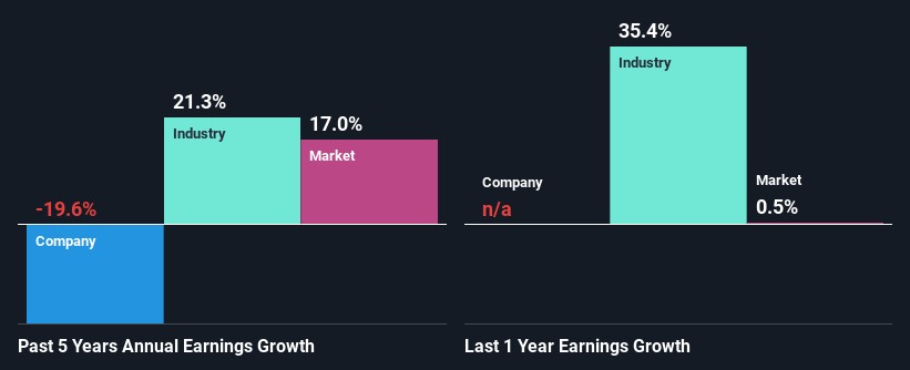 So, as a next step, we compared Franco-Nevada's performance against the industry and were disappointed to discover that while the company has been shrinking its earnings, the industry has been growing its earnings at a rate of 21% over the last few years.