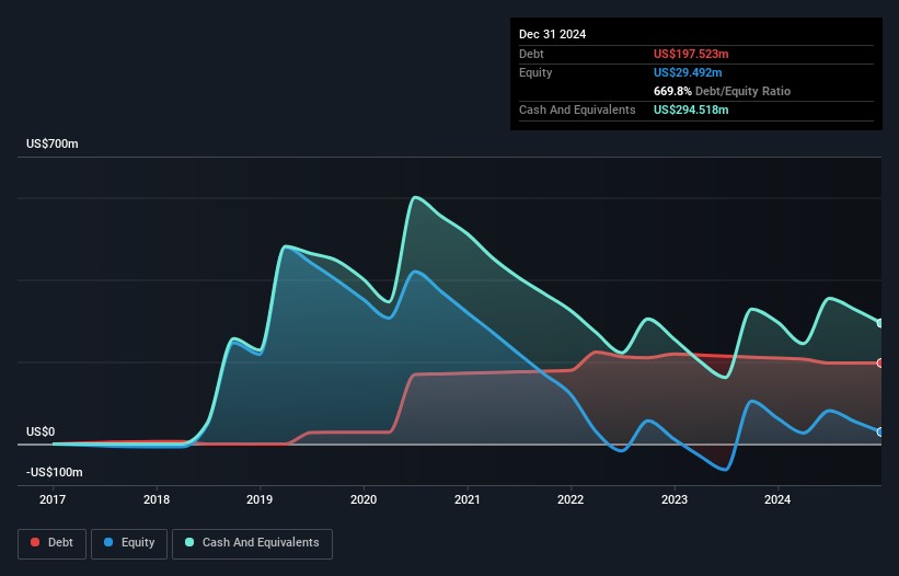 Gossamer Bio, Inc., with a market cap of US$203.32 million, is focused on developing treatments for pulmonary arterial hypertension. Despite being unprofitable and not expected to achieve profitability in the next three years, Gossamer has reduced its losses by 12.8% annually over the past five years. Its short-term assets of US$309.9 million exceed both short and long-term liabilities, indicating strong financial health relative to debt obligations. Recent earnings show a net loss reduction from US$179.82 million to US$56.53 million year-over-year, while revenue reached US$114.7 million in 2024, reflecting ongoing operational progress amidst high share price volatility.