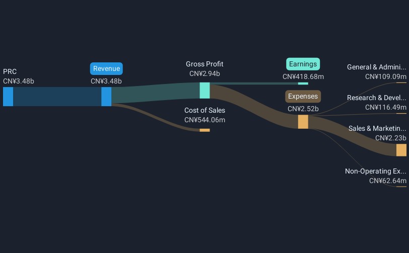 Operations: The company generates its revenue of CN¥3.48 billion from operations within the People's Republic of China.