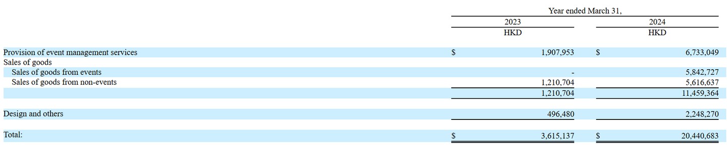 據招股書顯示,2024 財年卓狄國際的活動管理服務增長 252.89% 至 673.3 萬港元,商品銷售的收入為 1145.94 萬港元,同比增長 846.5%,其中來自活動銷售的產品收入為 584.27 萬,來自非活動銷售的產品收入為 561.66 萬。值得注意的是,2022 財年內並無活動銷售產品收入,可以説活動產品銷售是卓狄國際協同已有業務發展創收的新舉措,且已取得顯著成效,佔總收入的比例直接逼近三成。此外,卓狄國際 2024 財年的設計及其他業務收入為 224.83 萬港元,同比增長 352.84%。