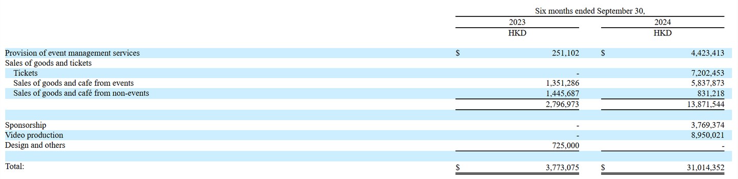 進入 2025 財年上半年,行業進一步復甦,卓狄國際簽訂了更多的管理展覽合同,且公司開始擔任活動的組織者/聯合組織者,從而顯著增加了包括門票、贊助、視頻製作等新業務的收入。值得注意的是,門票收入、視頻生成收入兩大收入類型從無到有直接成為卓狄國際收入的大頭,佔比分別為 23.22%、28.86%。與此同時,原有的活動管理服務、活動銷售產品均繼續大幅增長,從而帶動了期內總收入增約 722%。