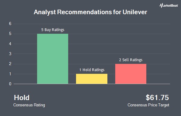 聯合利華 PLC (紐約證券交易所代碼:UL - 獲取免費報告) 目前被十家研究公司給予了 “適度買入” 的共識推薦,MarketBeat.com 報道。兩名股票研究分析師對該股票給予了賣出推薦,一名分析師給予了持有推薦,六名分析師給予了買入推薦,還有一名分析師給予了強烈買入推薦。在過去一年中,覆蓋該股票的經紀商的平均一年目標價為 66.33 美元。