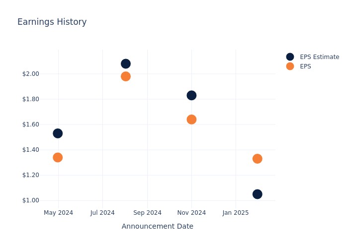 上个季度,公司每股收益超出预期 0.28 美元,随后第二天股价下跌 0.0%。