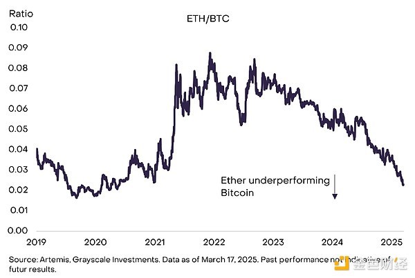 Figure 1: Ethereum has lagged behind Bitcoin for more than two years