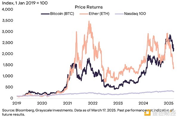 [10] Source: Coin Metrics, Grayscale Investments. Data as of March 15, 2025.