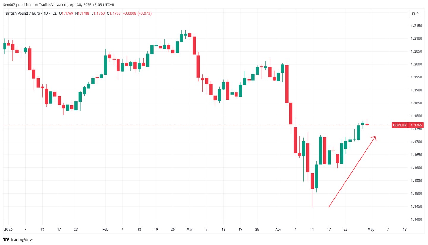 Since the beginning of 2025, the GBP/USD has cumulatively risen over 7%. On April 28, it briefly reached 1.3444, marking a new high since 2022.