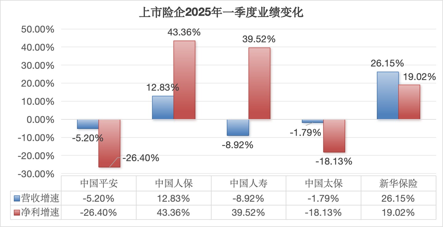 After experiencing a collective surge under the "dual bull market" of stocks and bonds in 2024, A-share listed insurance companies showed significant performance differentiation in the first quarter.