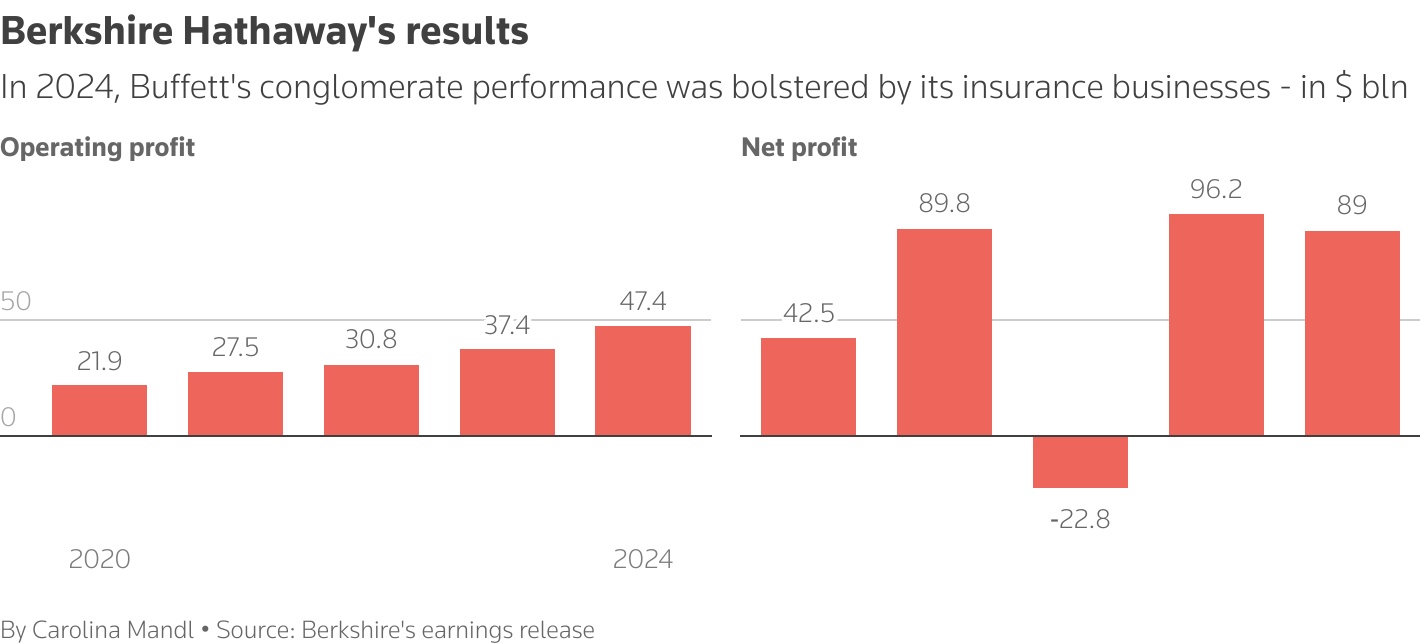 伯克希爾哈撒韋在 2024 年連續第三年創下運營利潤記錄,得益於其保險業務。