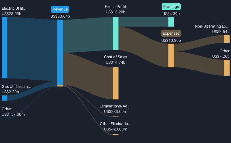 Duke Energy (NYSE:DUK) recently announced dividends on both its preferred and common stock, marking its ongoing commitment to shareholder value. Over the last quarter, the company's stock price rose by 8%, a movement that aligns generally with broader market trends. While the company's strategic partnership with GE Vernova and regulatory compliance efforts, such as license renewals for nuclear plants, may have added positive momentum, the overall market rally driven by better-than-expected earnings reports and optimism on trade talks likely offered a supportive backdrop for Duke's upward price movement.