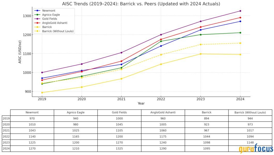 Gold mining is a tough business, but Barrick excels where it matters mostcost. Its all-in sustaining cost (AISC) sits well below its peers.