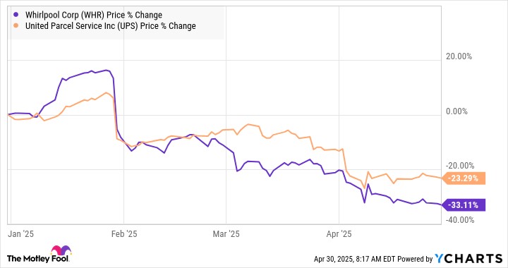 Both Whirlpool's and UPS' shares are down heavily this year, as they've both suffered a deterioration in their trading conditions.