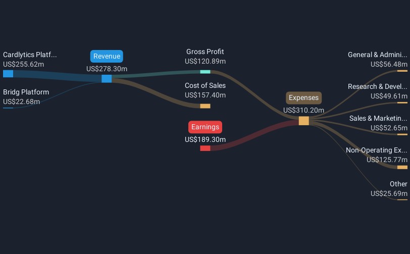 Operations: The company's revenue is primarily derived from its Cardlytics Platform, generating $255.62 million, and its Bridg Platform, contributing $22.68 million.