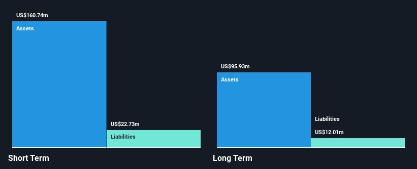 Blade Air Mobility, Inc. has shown resilience despite being currently unprofitable, with a net loss of US$27.31 million for 2024, an improvement from the previous year's US$56.08 million loss. The company benefits from a robust financial position with no debt and short-term assets of US$160.7 million exceeding liabilities significantly, providing a cash runway for over three years based on free cash flow. Recent initiatives include a pilot program in partnership with Skyports Infrastructure aimed at expanding urban air mobility services in New York City, potentially enhancing future revenue streams and operational efficiencies as they transition to electric vertical aircraft operations.