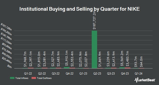 其他一些對沖基金和機構投資者也對該公司的持股進行了調整。Heck Capital Advisors LLC 在第四季度購買了價值約 28,000 美元的 NIKE 股票。Caitlin John LLC 在第四季度將其在 NIKE 的持股增加了 117.0%。Caitlin John LLC 目前擁有 371 股這家鞋類製造商的股票,價值 28,000 美元,此前在上個季度又購買了 200 股。Roxbury Financial LLC 在第四季度購買了價值約 30,000 美元的 NIKE 股票。LFA Lugano Financial Advisors SA 在第四季度將其在 NIKE 的持股增加了 110.5%。LFA Lugano Financial Advisors SA 目前擁有 400 股這家鞋類製造商的股票,價值 30,000 美元,此前在此期間又收購了 210 股。最後,Hopwood Financial Services Inc. 在第四季度獲得了價值 30,000 美元的 NIKE 新頭寸。機構投資者和對沖基金持有該公司 64.25% 的股份。