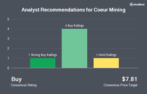 A number of equities research analysts have issued reports on the stock. Cormark raised shares of Coeur Mining to a "moderate buy" rating in a report on Thursday, February 20th. TD Securities started coverage on shares of Coeur Mining in a research note on Tuesday, March 11th. They issued a "buy" rating and a $7.00 target price on the stock. Raymond James reiterated an "outperform" rating and issued a $8.50 price objective on shares of Coeur Mining in a research report on Wednesday, April 2nd. Roth Mkm lowered their price target on Coeur Mining from $8.50 to $8.25 and set a "buy" rating on the stock in a report on Friday, February 21st. Finally, BMO Capital Markets began coverage on shares of Coeur Mining in a report on Tuesday, February 18th. They issued an "outperform" rating and a $9.00 price target on the stock.