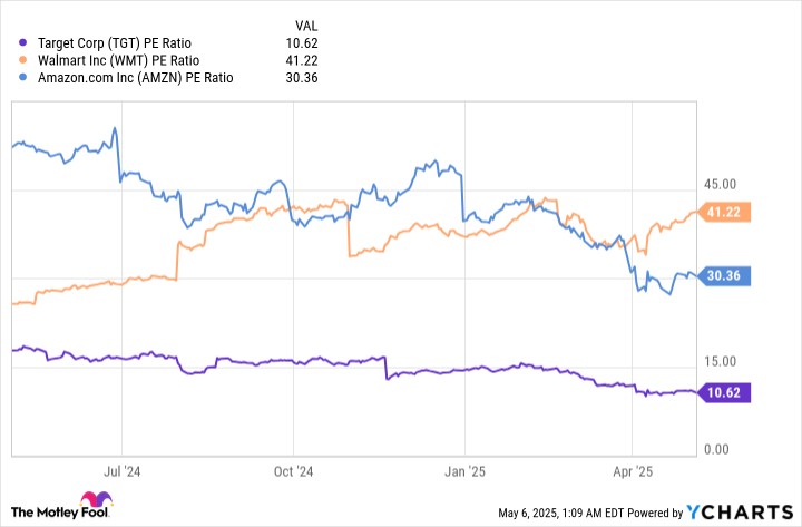 Compared to competitors Walmart and Amazon, Target's P/E multiple is significantly lower at the time of this writing, suggesting Target shares are a better value than its rivals.