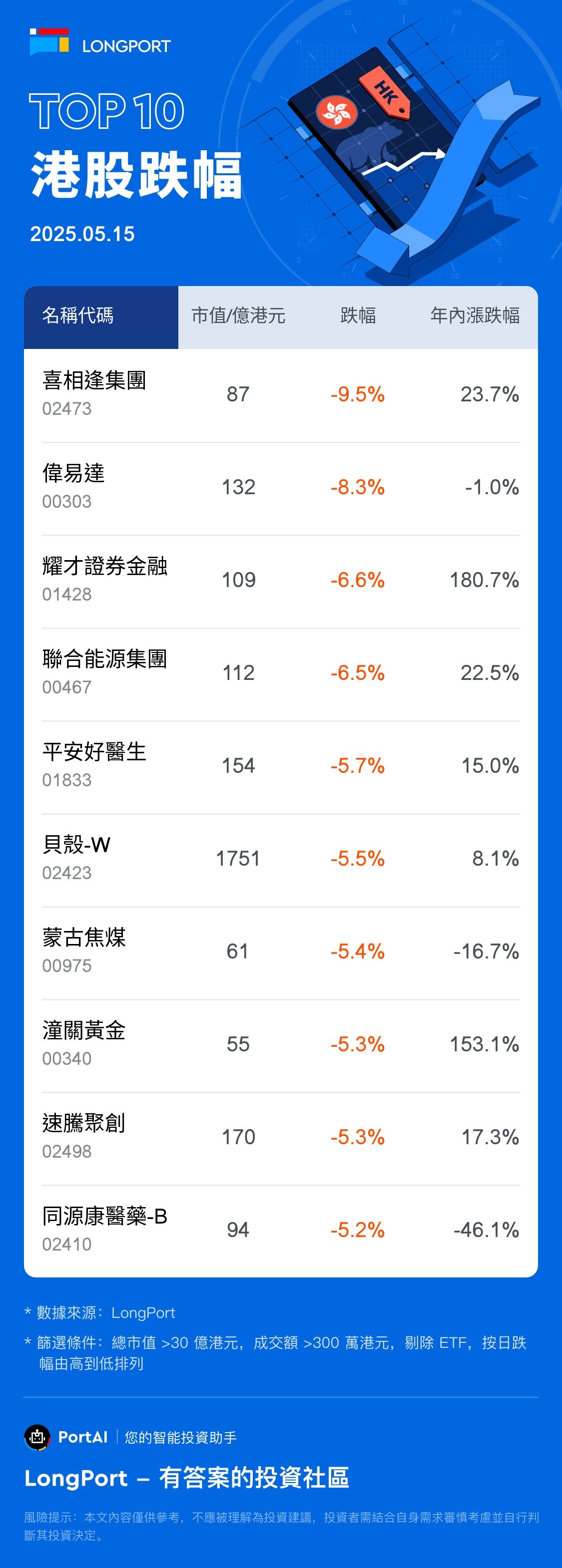 Top 10 HK Stock Losers (5.15)