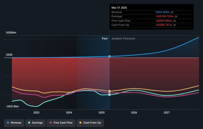 We can see that Quantum-Si does have institutional investors; and they hold a good portion of the company's stock. This implies the analysts working for those institutions have looked at the stock and they like it. But just like anyone else, they could be wrong. It is not uncommon to see a big share price drop if two large institutional investors try to sell out of a stock at the same time. So it is worth checking the past earnings trajectory of Quantum-Si, (below). Of course, keep in mind that there are other factors to consider, too.