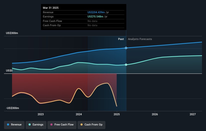 Capital Southwest Corporation (NASDAQ:CSWC) reported annual results with revenues of US$204m, meeting forecasts, but earnings per share (EPS) fell 15% short at US$1.47. Analysts have revised their 2026 revenue forecast to US$226.8m, reflecting an 11% growth, while EPS estimates dropped to US$2.25, a 61% increase. The consensus price target remains at US$22.92, indicating stable valuation despite concerns over reduced EPS estimates. Overall, while growth is expected to slow compared to historical rates, Capital Southwest is projected to outperform its industry peers.
