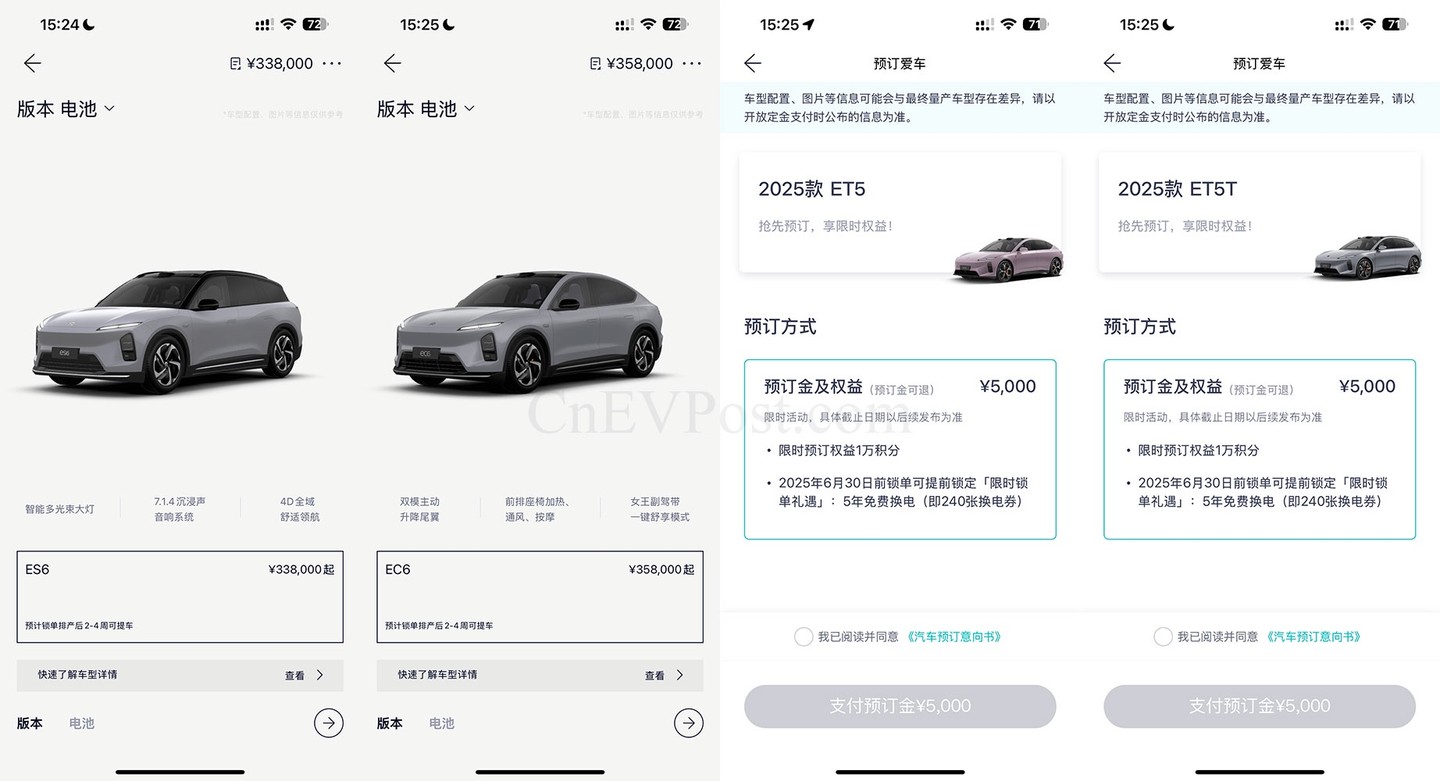 Apart from the updated ES6 and EC6, Nio will also launch the updated ET5 sedan, ET5 Touring wagon on May 25 -- they have already started accepting pre-orders on May 10. The Nio App doesn't currently show the delivery wait times for these two models.