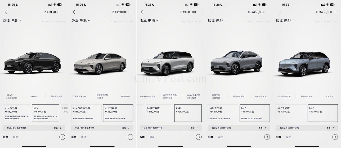 Nio App shows 2-4 weeks delivery wait for facelifted ES6, EC6