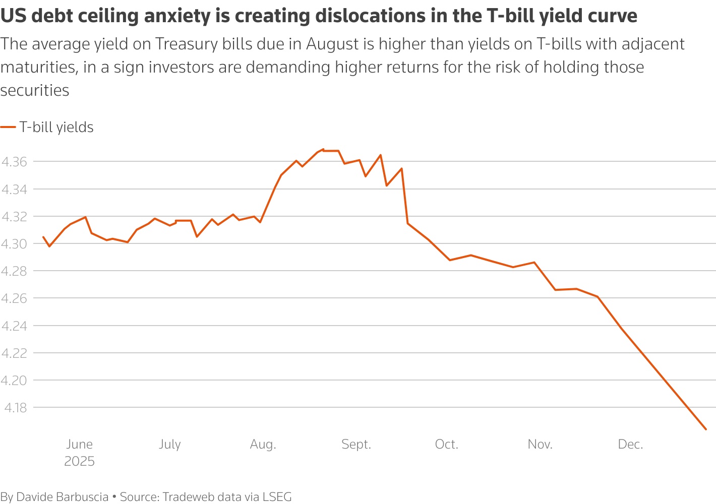 US debt ceiling anxiety is creating dislocations in the T-bill yield curve