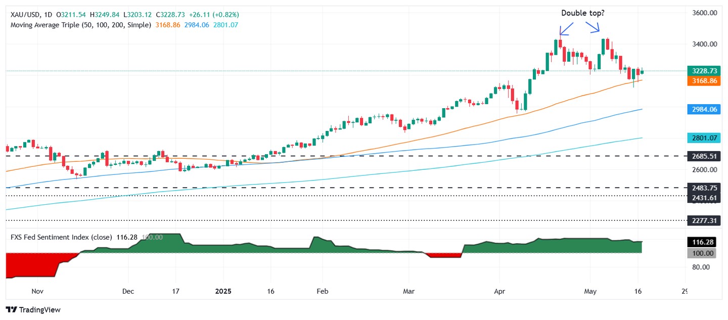 To achieve a bullish continuation, gold must break through $3,300 for buyers to challenge the latest high of $3,438 maintained on May 7. Further resistance is around $3,500. Conversely, if gold/USD remains below $3,250, the next support level will be $3,200, followed by the 50-day SMA. A break below the latter will expose $3,100.