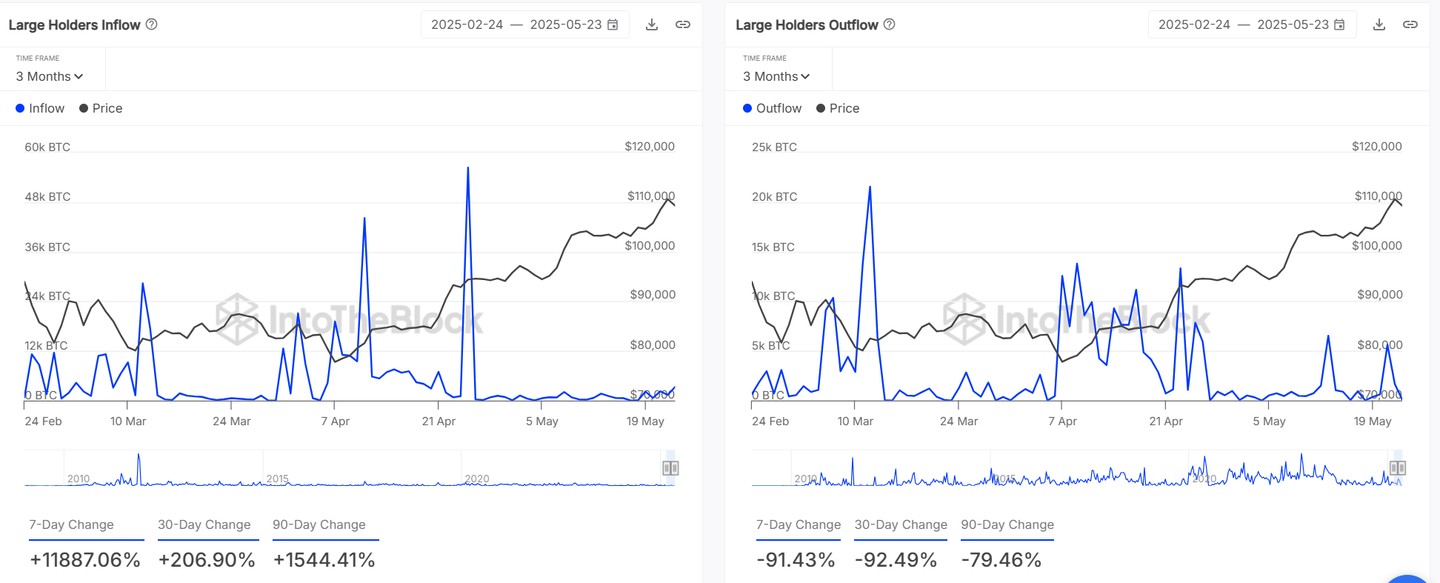 Large holder behavior has shifted sharply. Over the last week, inflows surged over 11,800%, while outflows dropped more than 91%.