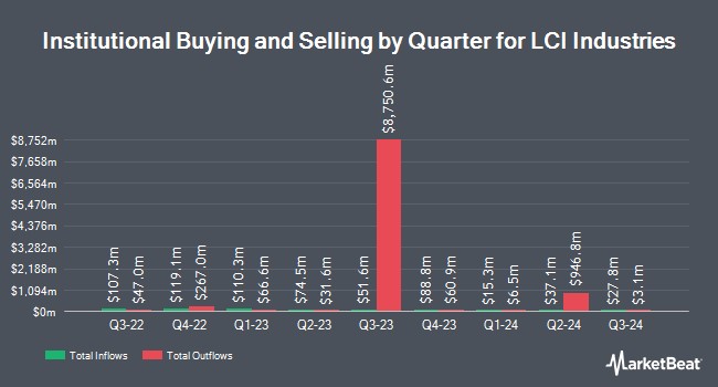 Other institutional investors and hedge funds also recently added to or reduced their stakes in the company. Smartleaf Asset Management LLC increased its position in LCI Industries by 205.8% during the 4th quarter. Smartleaf Asset Management LLC now owns 367 shares of the company's stock worth $37,000 after purchasing an additional 247 shares during the period. Headlands Technologies LLC acquired a new position in LCI Industries during the 4th quarter worth approximately $59,000. Blue Trust Inc. increased its position in LCI Industries by 60.2% during the 4th quarter. Blue Trust Inc. now owns 623 shares of the company's stock worth $64,000 after purchasing an additional 234 shares during the period. Covestor Ltd grew its holdings in shares of LCI Industries by 159.3% in the 4th quarter. Covestor Ltd now owns 765 shares of the company's stock worth $79,000 after acquiring an additional 470 shares during the period. Finally, Lido Advisors LLC acquired a new stake in shares of LCI Industries in the 4th quarter worth approximately $201,000. Institutional investors and hedge funds own 99.71% of the company's stock.