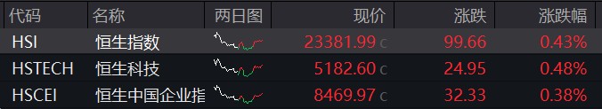 港股:恒指收漲 0.43%,恒生科技指數漲 0.48%。