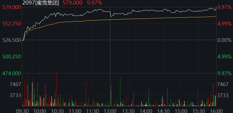 港股的茶飲股今天也明顯上漲,蜜雪集團收漲近 10%,古茗漲超 7%。