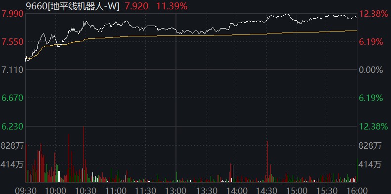 地平線機器人股價收漲超 11%,報 7.92 港元/股。